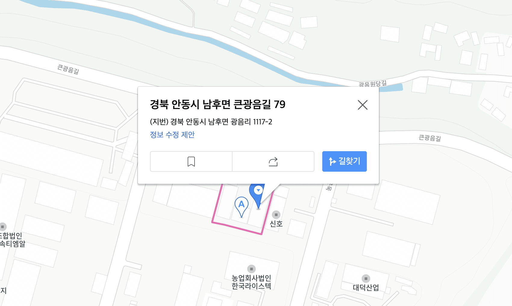 주소 : 경북 안동시 남후면 큰광음길 79 남후농공단지(지번) 남후면 광음리 1117-2